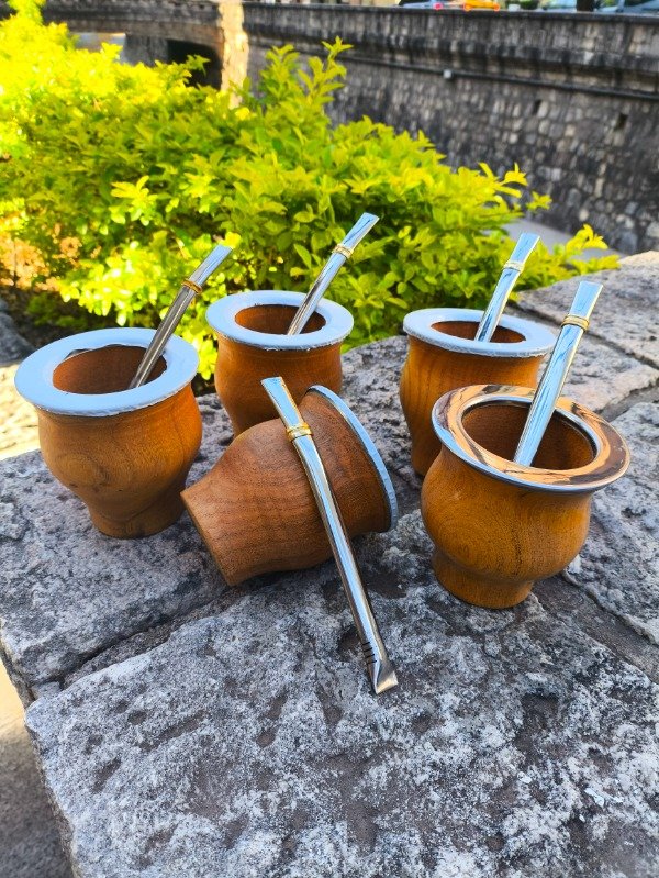 5 mates camioneros de algarrobo con virola de acero inoxidable